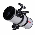 Самый "могучий" в линейке Ньютоновских телескопов Veber - и с точки зрения диаметра зеркала и с точки зрения монтировки. Мы рекомендуем его для серьезных и подготовленных. При такой апертуре его длина всего 520 мм, что делает прибор удобным для использования даже на балконе. В него можно увидеть лунные кратеры и образования диаметром около 2 км, 6-7 спутников Юпитера, даже спиральные ветви слабой галактики Водоворот, удаленный от нас на целых 35 миллионов световых лет! Однако: с окуляром PL25 вы получите увеличение 32х, с которым удобно вести наземные наблюдения. При этом ближняя точка фокусировки составит всего 10 м. Исполнение телескопа - самое профессиональное. Металлические: корпус, кольца крепления, заглушки, все детали окулярной части, включая подвижные и неподвижные части фокусера. Пластиковый только корпус 6-ти кратного искателя. Исполнение телескопа также можно назвать дизайнерским - настолько хорошо сочетаются черный блестящий корпус и окрашенные зеленоватой эмалью части монтировки (включая противовесы) и элементы штатива. Телескоп поставляется с профессиональной монтировкой немецкого типа EQ4 со встроенным искателем полюса (это оптическая трубка с перекрестьем, интегрированная внутрь монтировки). Мощный алюминиевый штатив снабжен металлическими распорками, на которые можно установить столик для аксессуаров. В общем, Veber 800/203 очень надежный, устойчивый телескоп для серьезных наблюдений (даже исследований!) с превосходным качеством изображения и весьма разумной ценой.